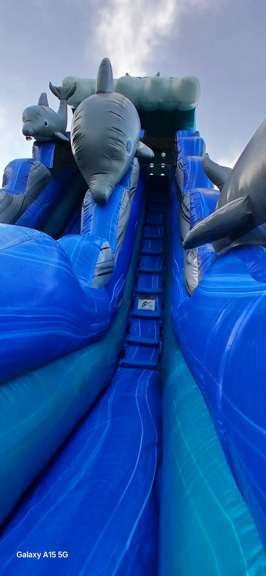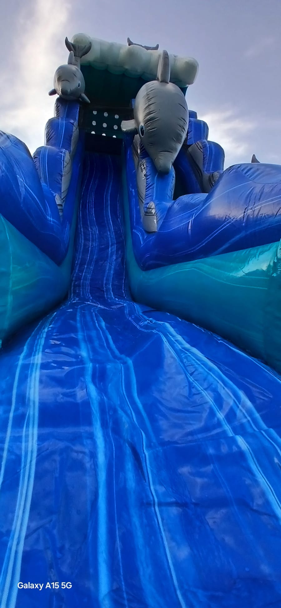 This waterslide is a tall, single lane waterslide with a pool at the end. This waterslide has multiple dolphins around it to help make you feel like you are swimming in the ocean.