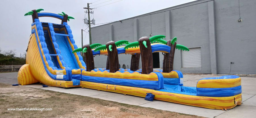 Get ready for the ultimate summer thrill with The Inflatable King’s 24ft Lava Falls Water Slide! Towering 24 feet tall and stretching an incredible 65 feet long, this single-lane water slide is built for pure excitement from start to splash. Riders climb to the top before racing down the fiery red and orange lava-themed slope, ending in a large splash pool that’s perfect for cooling off in the Florida heat.